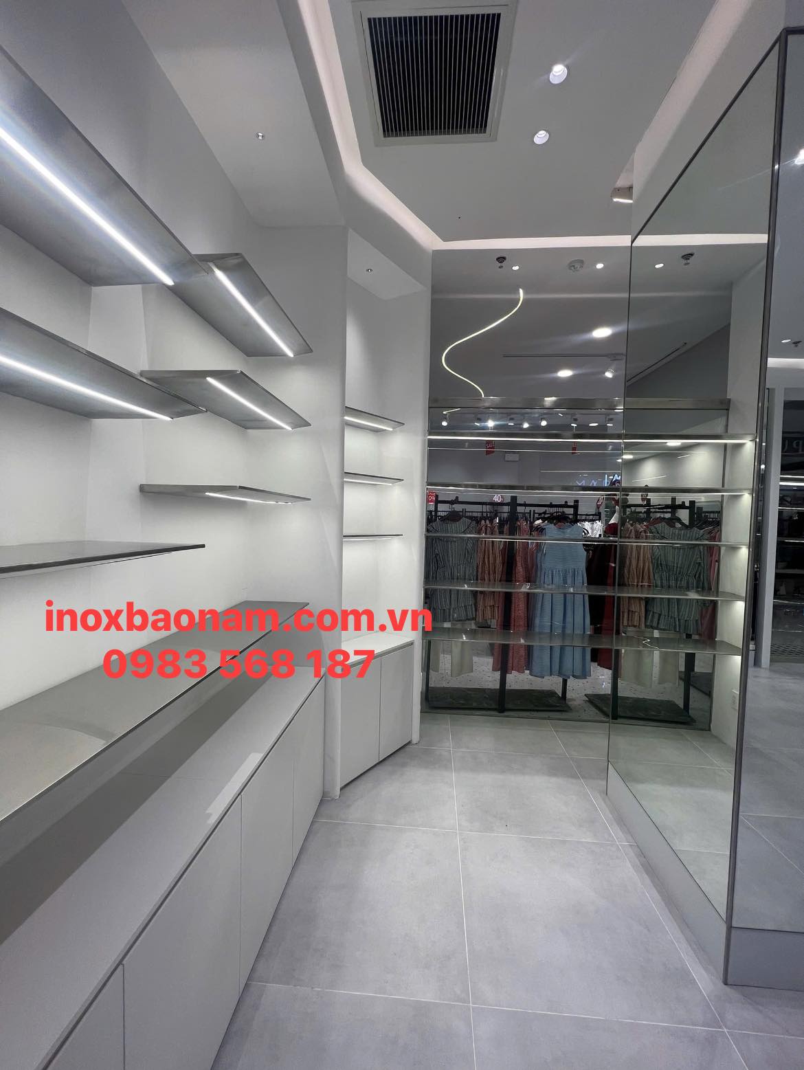 Bảo Nam Chuyên gia công inox thi công tủ kệ inox cho nội thất inox shop thời trang và showroom trưng bày- Gia Công Thi Công Theo Yêu Cầu